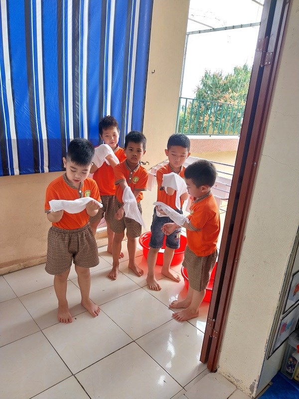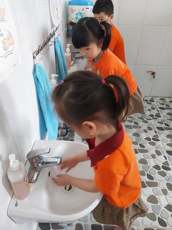 Hình ảnh giờ rửa tay, rửa mặt của trẻ ở các nhóm lớp