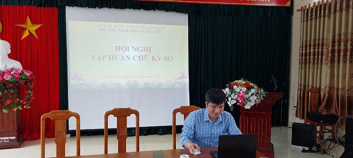 Thực hiện kế hoạch của PGD. Chiều ngày 28 tháng 3 năm 2024. Trường MN Thắng Thủy tổ chức hội nghị tập huấn chữ ký số do đại diện Viettel Hải Phòng hướng dẫn với sự có mặt đông đủ của tập thể các cán bộ giáo viên trong nhà trường.