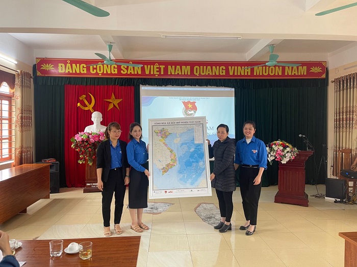 Cũng nhân dịp này hưởng ứng phong trào “Tự hào một dải non sông” cho Trung ương Đoàn phát động, chi đoàn đã trao tặng bản đồ Việt Nam cho nhà trường treo tại phòng truyền thống.