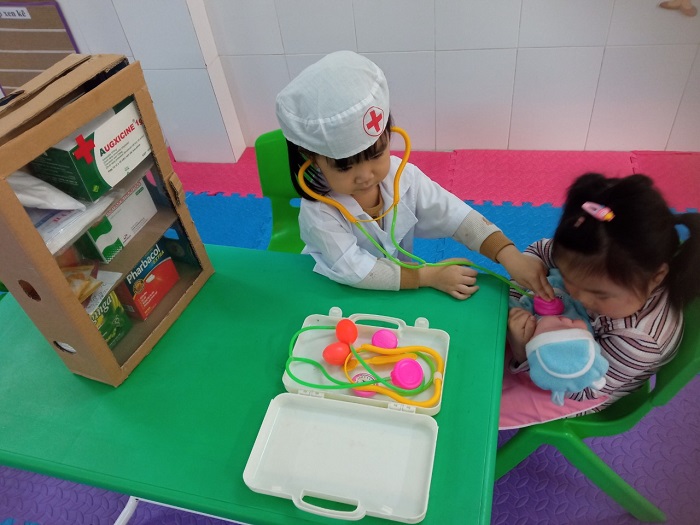 Ngày thứ 2 của tuần mới, các bé lớp 3 tuổi 1 trường mầm non Thắng Thủy đang say sưa với những hoạt động trong các góc xây dựng, học tập, nghệ thuật và nấu ăn. Từ sự hướng dẫn của cô giáo và sự sáng tạo của các bé đã tạo nên một giờ chơi thực sự vui vẻ, bổ ích.