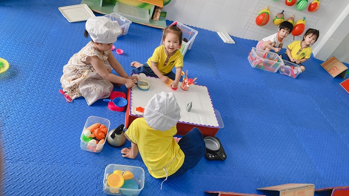 Được làm người lớn là ước mơ của trẻ nhỏ và đặc biệt là trẻ mầm non. Để các con thoả niềm mong ước ấy sau mỗi hoạt động học các cô giáo sẽ tổ chức cho các con chơi những trò chơi ở các góc chơi: Góc xây dựng, góc phân vai, góc học tập, góc nghệ thuật...để bé được hoá thân làm những chú thợ xây dựng, những người đầu bếp tài năng hay những hoạ sỹ tí hon