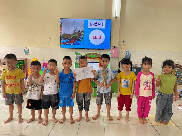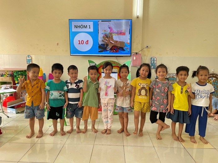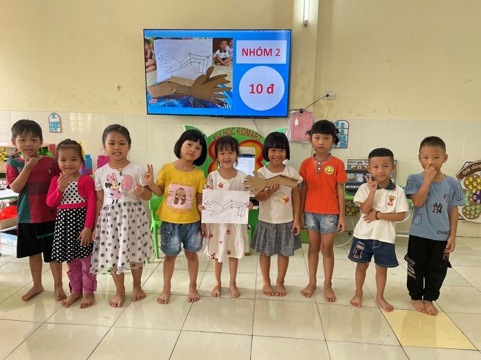 Trẻ thực hiện thuyết trình về sản phẩm của nhóm mình đã làm được