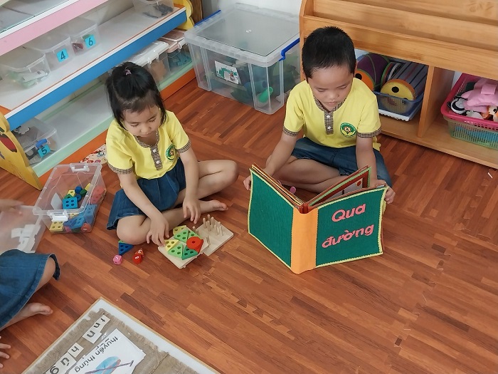 Bé với các trò chơi trong góc là 1 trong những hoạt động có trong chế độ sinh hoạt 1 ngày của bé. Bé được đóng vai làm người lớn chơi trò chơi trong góc phân vai đóng vai làm người bán hàng, mua hàng trả giá hay được chơi các trò chơi trong góc học tập như: Trò chơi Toán, tách gộp, thêm bớt. Được thoả sức sáng tạo trò chơi mới trong góc nghệ thuật, được đóng vai làm các chú thợ xây tại góc xây dựng thật là vui thích biết bao