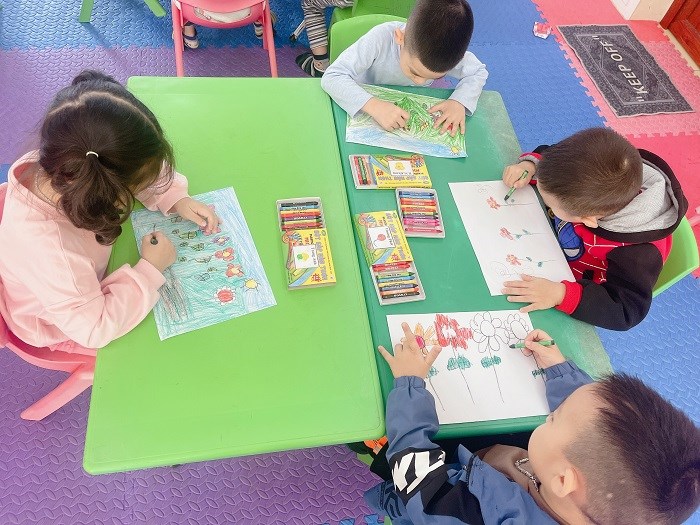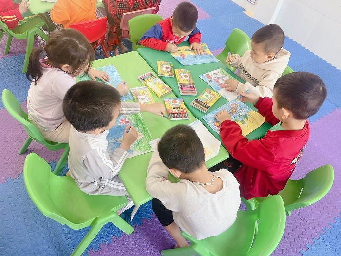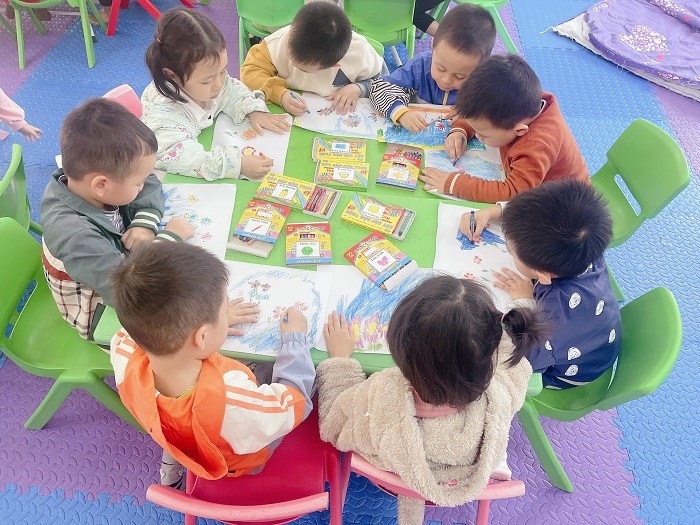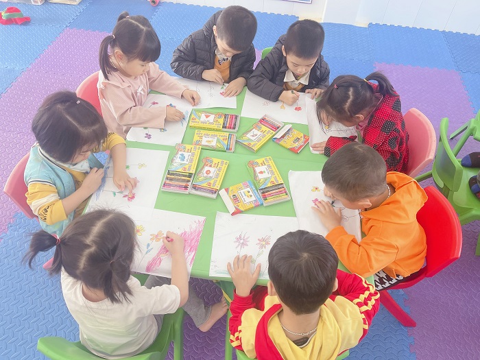 Một trong những hoạt động sinh hoạt một ngày của trẻ đó là hoạt động học. Thực hiện các bài học theo chủ đề nhánh: Ngày hội của các cô giáo các bé lớp 4t3 đã có tiết học: Vẽ hoa tặng cô giáo nhân ngày 20/11. Bằng sự sáng tạo của mình các bé đã vẽ được bức tranh sáng tạo với cách phối màu độc đáo đẹp mắt. Qua bài học rèn cho trẻ kỹ năng cầm bút vẽ, tô màu và cách phối màu hài hoà cân đối. Trẻ rất hứng thú, tích cực tham gia tiết học tại lớp.