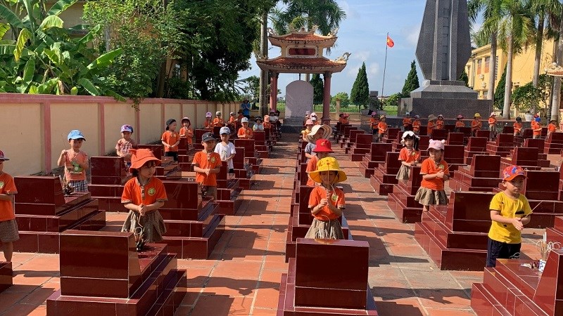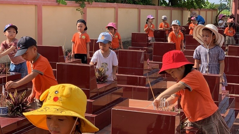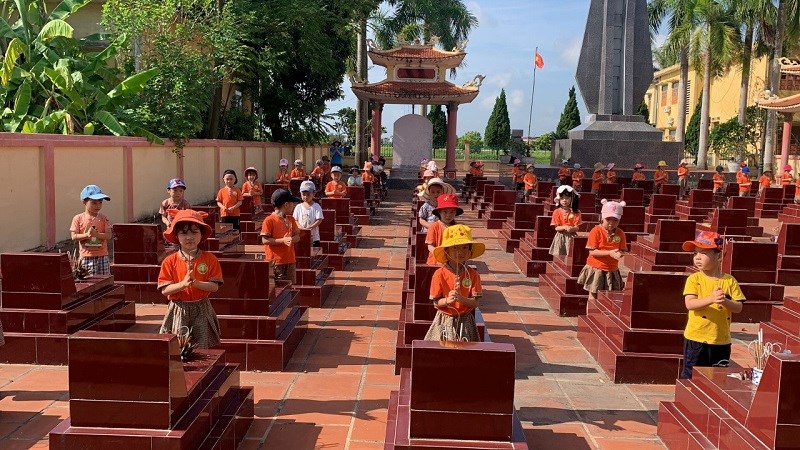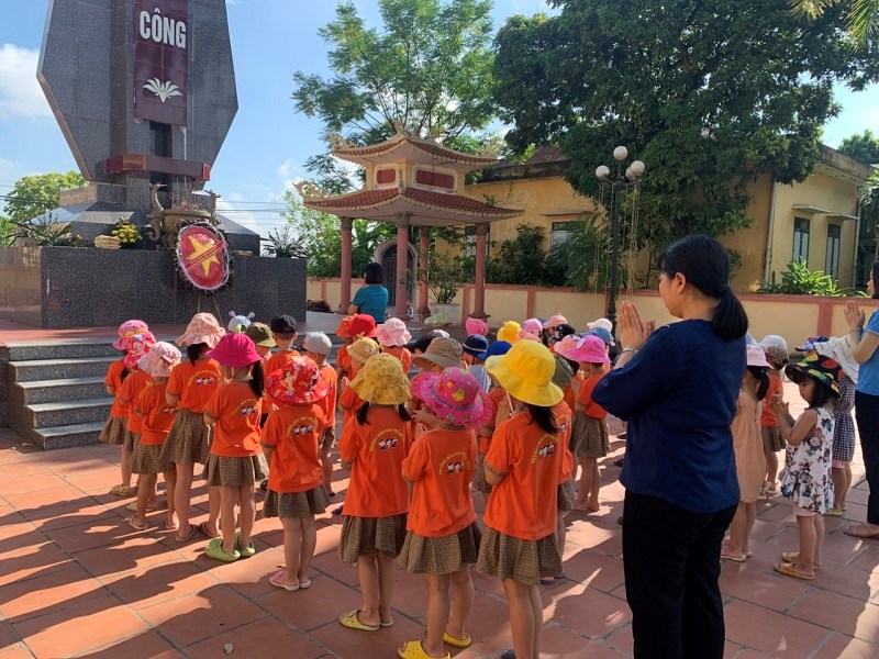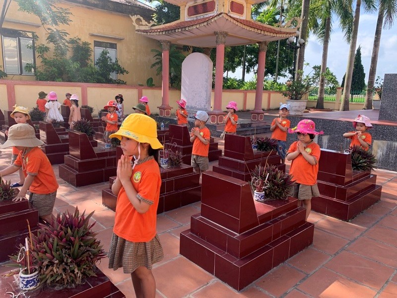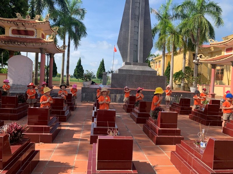 Hướng tới Kỷ niệm 76 năm ngày Thương binh Liệt sỹ (27/7/1946-27/7/2023). Được sự nhất trí của Đảng, chính quyền địa phương, sự thống nhất của Ban Giám hiệu nhà trường. Các đồng chí giáo viên khối 5 tuổi trường Mầm non Thắng Thủy đã tổ chức cho các con khối 5 tuổi đại diện cho các bạn trong toàn trường về dâng hương tại nghĩa trang Liết sỹ của địa phương nhằm giáo dục cho các con lòng biết ơn về sự hy sinh của các anh hùng Liêt sỹ và đạo lý "Uống nước nhớ nguồn".