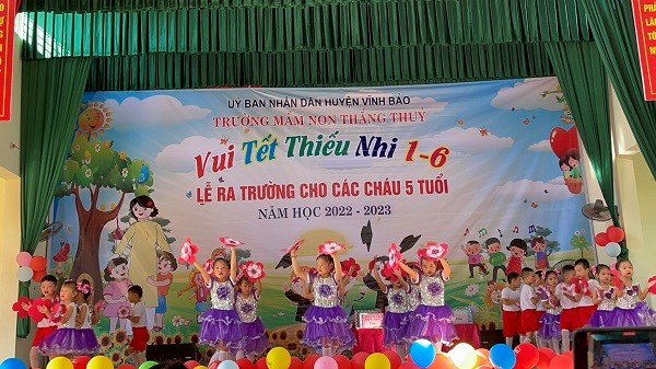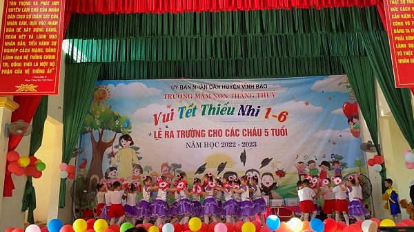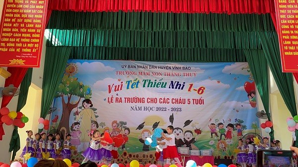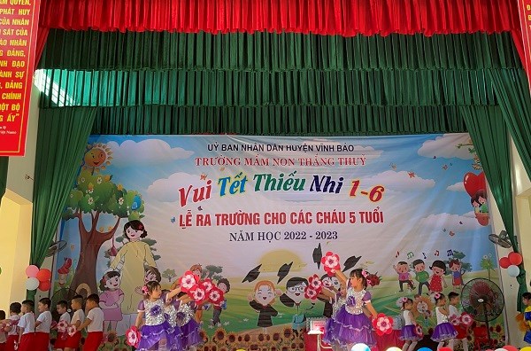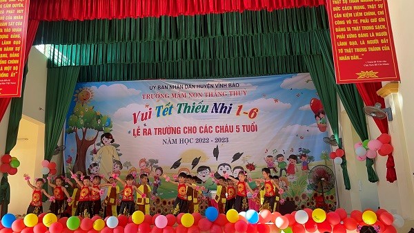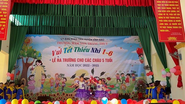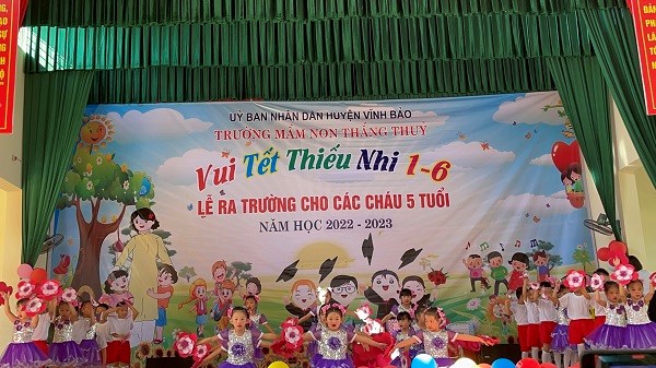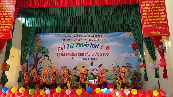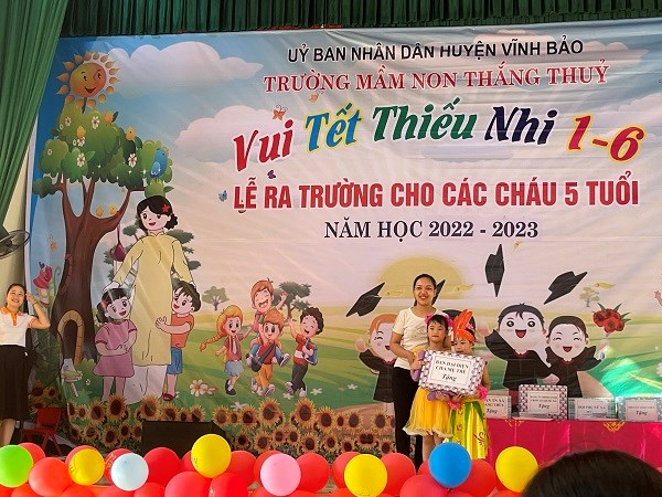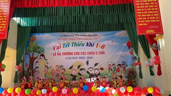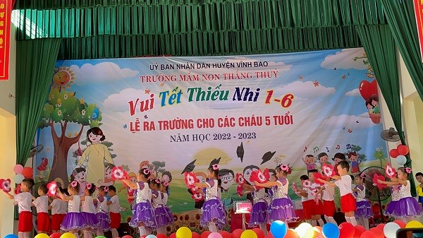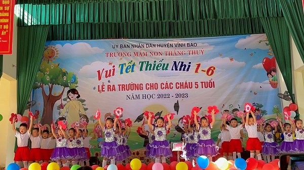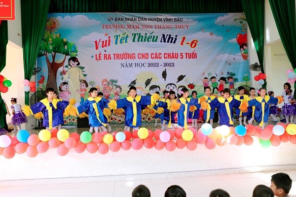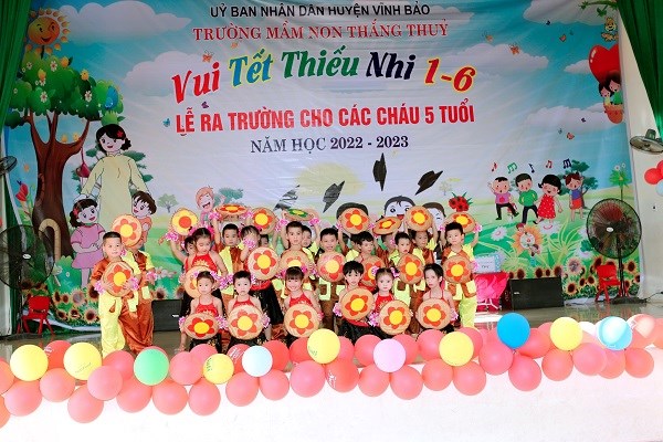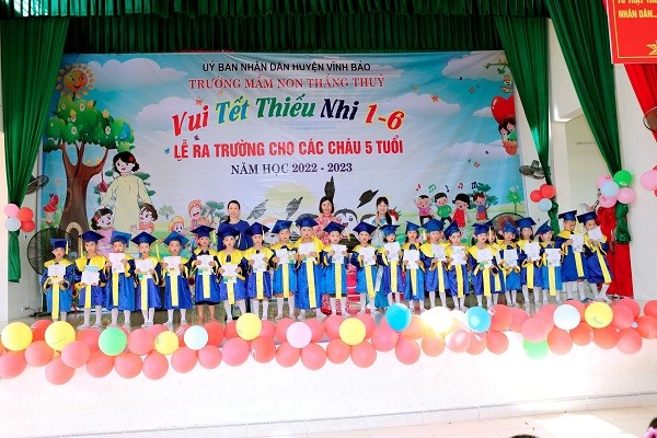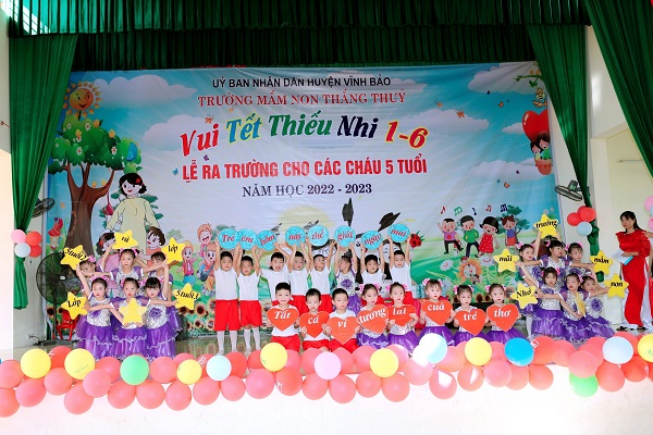 Sáng ngày 31/05/2023, trường mầm non Thắng Thủy tổ chức cho trẻ trong toàn trường “Vui tết thiếu nhi 1/6 và lễ ra trường cho các cháu 5 tuổi. Trong ngày tết thiếu nhi, các bé rất vui khi được nhận nhiều quà của các vị đại biểu về dự. Đặc biệt các bé lớp 5 tuổi được nhận giấy chứng nhận hoàn thành chương trình giáo dục mầm non cho trẻ 5 tuổi để rồi các con sẽ rời vòng tay yêu thương của các cô giáo mầm non bước sang 1 cấp học mới với các thầy cô giáo trường Tiểu học.