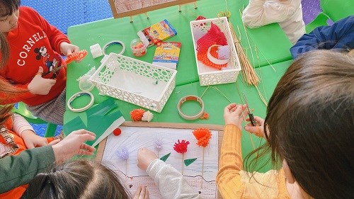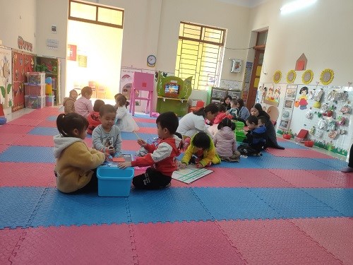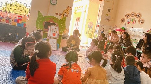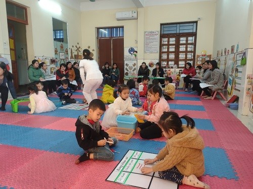 Sáng ngày 25/02/2023, Trường mầm non Thắng Thủy đã tổ chức Bồi dưỡng chuyên môn bằng hình thức tổ chức 2 chuyên đề về phương pháp STEAM mới theo mô hình 5E do 2 lớp 4T1 và 5T1 thực hiện, kết hợp cùng 1 chuyên đề PTTTCKNXH-TM do lớp NT1 thực hiện. Tới dự chuyên đề có các đồng chí trong BGH nhà trường cùng các giáo viên các nhóm lớp đến dự giờ. Đối với lĩnh vực PTTCKNXH- TM của Nhà trẻ bước đầu rèn cho trẻ kỹ năng dán, phối màu trang trí bưu thiếp theo sự hướng dẫn của cô giúp trẻ biết cảm thụ và yêu cái đẹp, biết lắng nghe và trả lời câu hỏi của cô giúp trẻ phát triển ngôn ngữ, rèn khả năng tư duy, ghi nhớ cho trẻ ngay từ khi còn nhỏ.