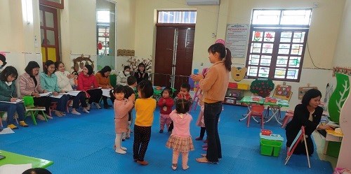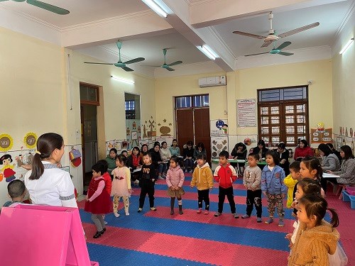 Cô và trẻ cùng hát và vận động bài hát: "Hoa mùng 8/3"