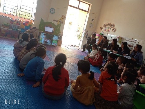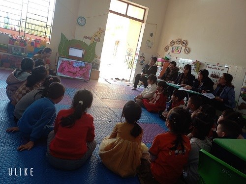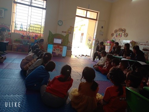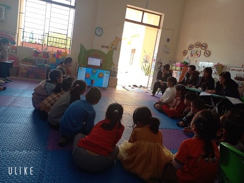 Cô cho trẻ xem video tranh hoa làm từ từ các nguyên vật liệu