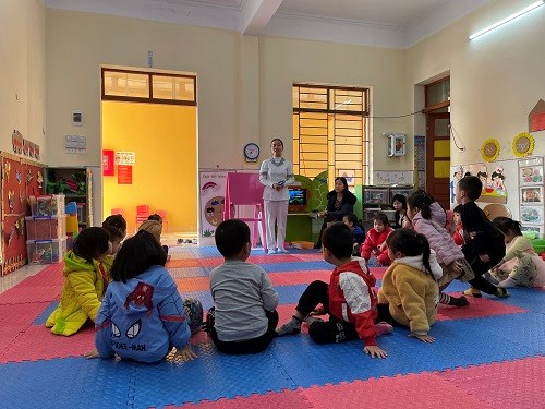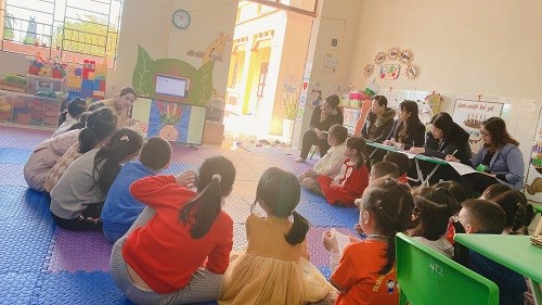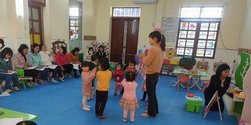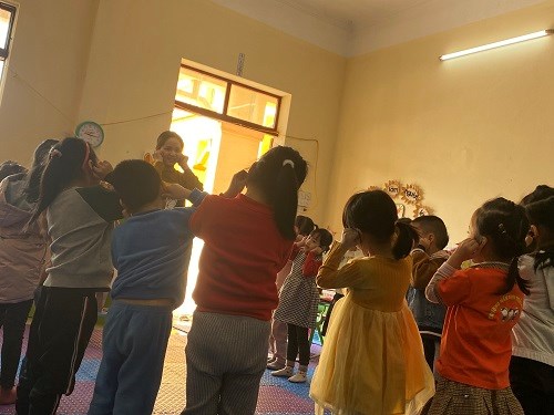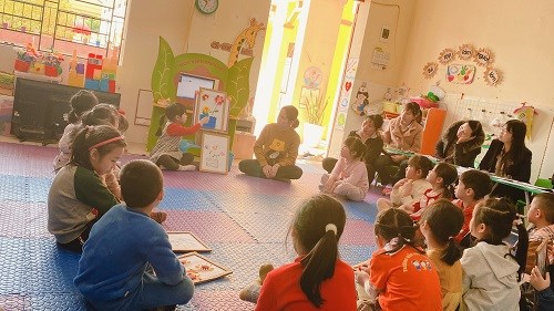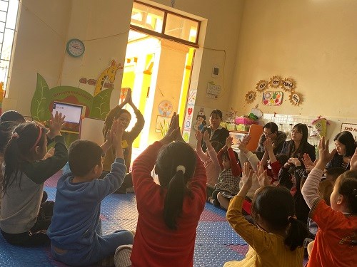Cô và trẻ hát bài hát: Bông hoa mừng cô