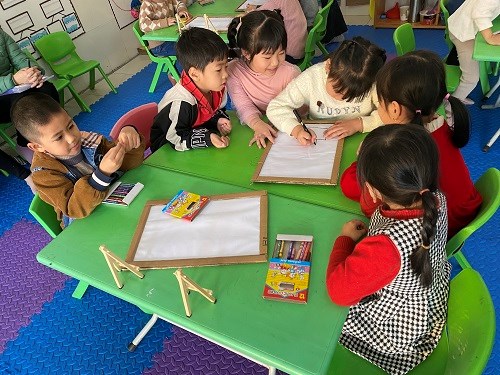 Cho trẻ về 3 nhóm thảo luận, hỏi ý tưởng trẻ và trẻ tự phân công nhiệm vụ cho các thành viên trong nhóm để vẽ được bản thiết kế cho nhóm mình